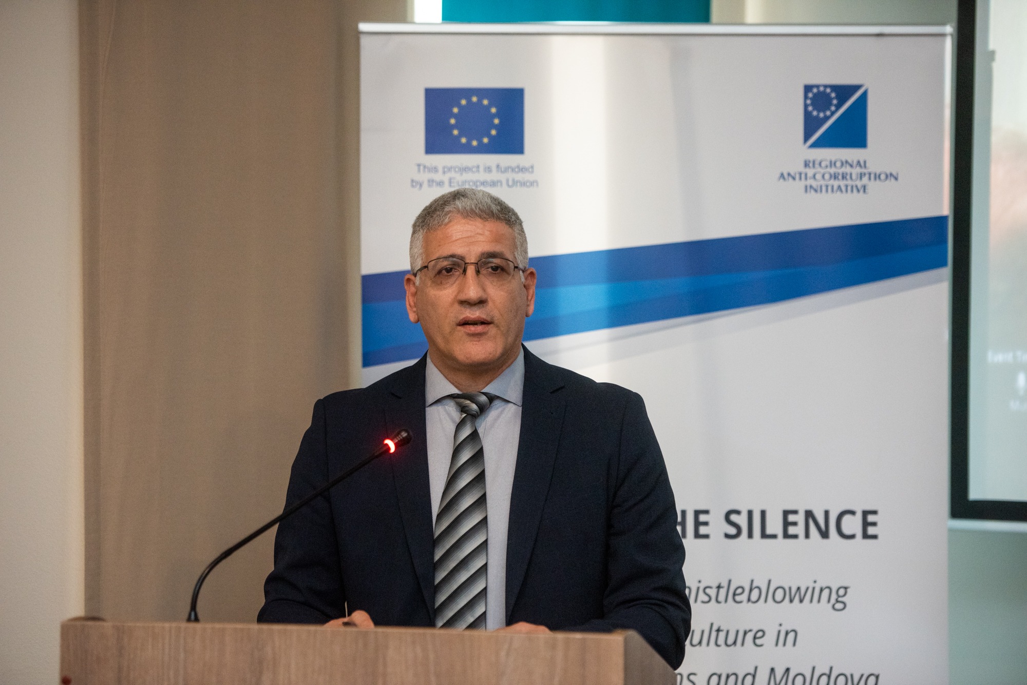 Following the presentation of project activities and results, by the Anti-Corruption Expert and Project Manager, Elmerina Ahmetaj Hrelja, friends of the project, Tom Devine, RAI Whistleblowing Expert and Legal Director of the Government Accountability Project, USA, Arjan Dyrmishi Coordinator of the SEE Coalition on Whistleblower Protection, and COL Dimitrios Biris, Programme Manager for SSG Pillar at RACVIAC, shared their perspective on the significance of continuous support to whistleblower protection..