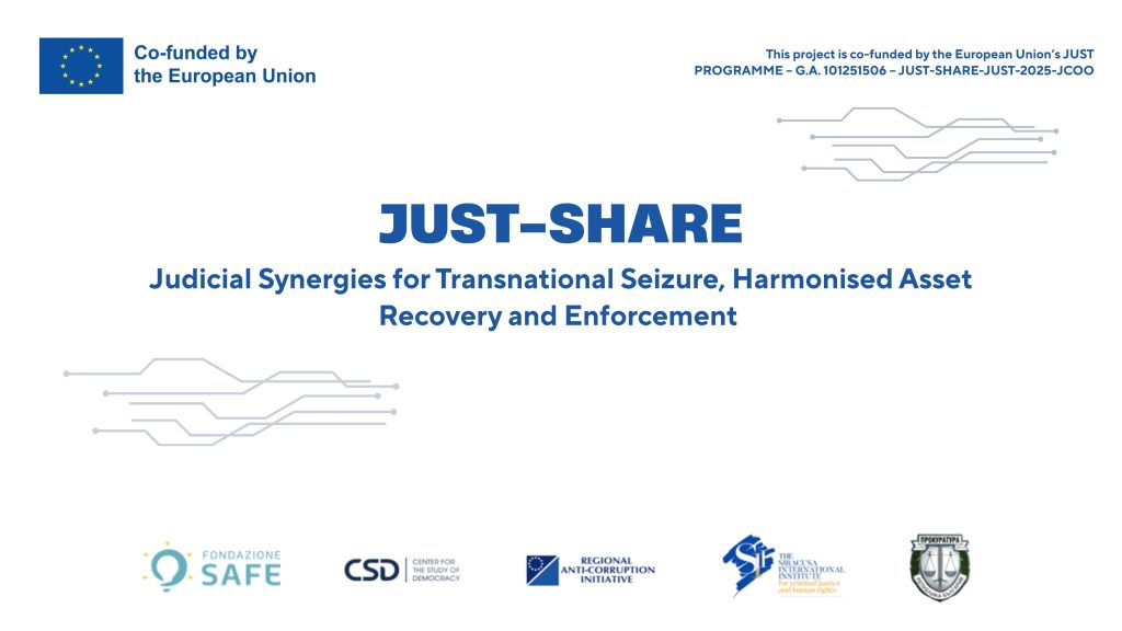 JUST-SHARE – Judicial Synergies for Transnational Seizure, Harmonised Asset Recovery and Enforcement is a project co-funded by the European Union under the EU Justice Programme, aimed at strengthening judicial cooperation in criminal matters across Europe, with a specific focus on cross-border asset recovery and confiscation of criminal proceeds.