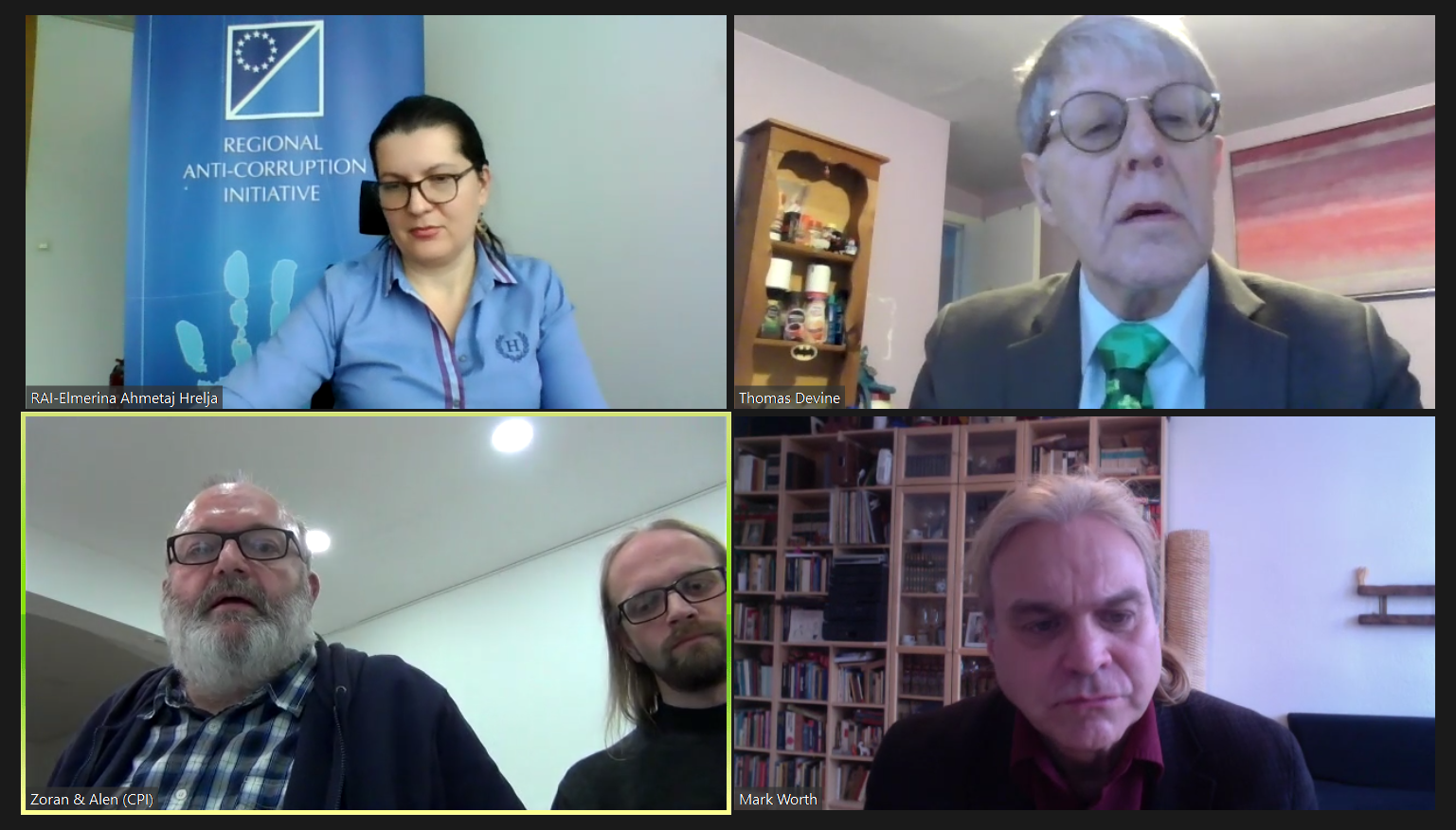 The training was delivered by international and regional experts on whistleblowing, Mr. Tom Devine, Mr. Mark Worth, Mr. Stephan Kohn, Mr. Mevludin Dzindo, Mr. Boris Vukasinovic, and Ms. Vanja Calovic Markovic, the RAI Secretariat project manager – anti-corruption expert, Ms. Elmerina Ahmetaj Hrelja, and senior anti-corruption advisor Ms. Aneta Arnaudovska, combined with group discussions and recommendations.