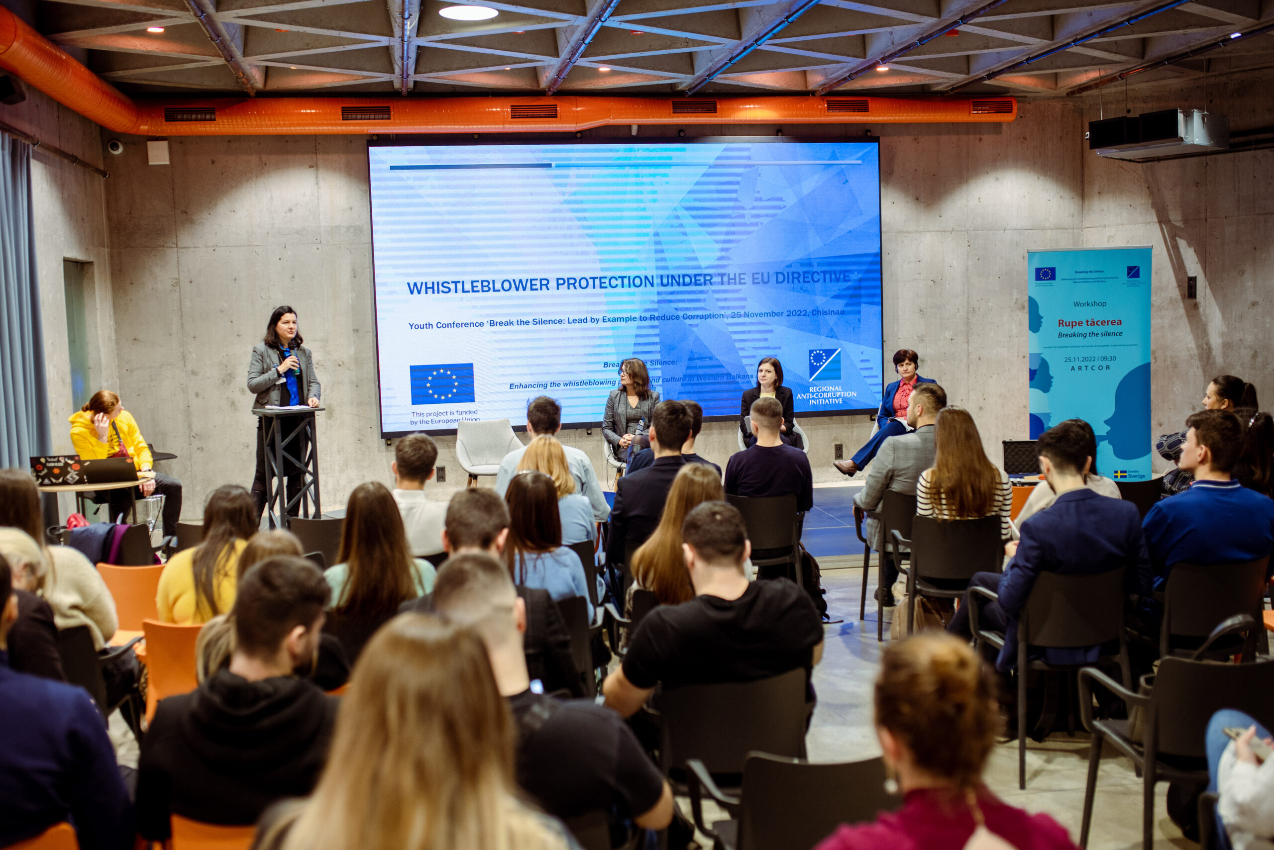 The local youth event “Breaking the Silence”was organized as part of the project “Breaking the Silence: Improving whistleblowing policies and culture in the Western Balkans and Moldova”, funded by the European Union.